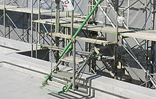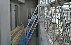 足場周りのステップや落下防止ネット、養生金網など安全対策も万全です。